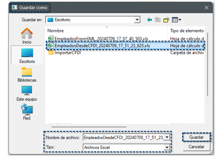 Por ejemplo: EmpleadosFromXML_20240709_17_16_25_902.xls