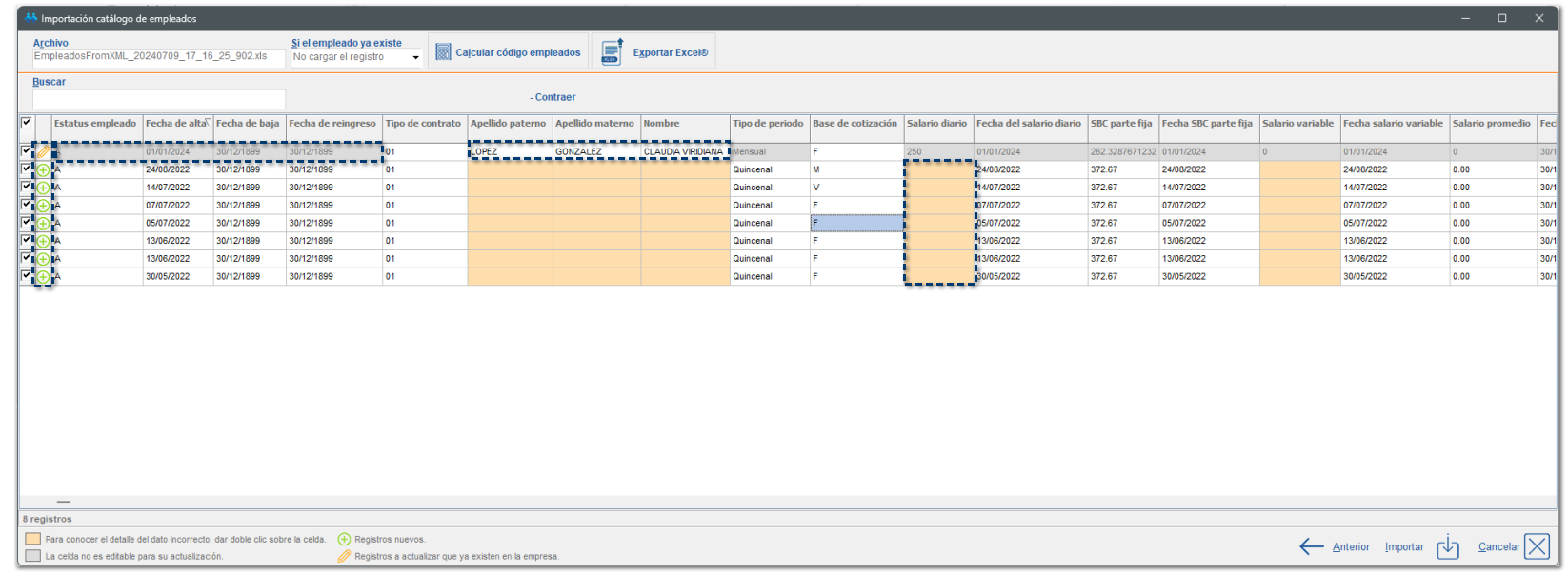 En la BITÁCORA DE IMPORTACIÓN DE EMPLEADOS podrás visualizar la siguiente información: