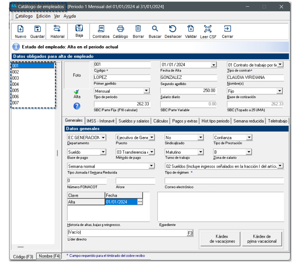 , el sistema asignará de manera automática el código de los empleados, tomando el código consecutivo del último empleado registrado en tu empresa.