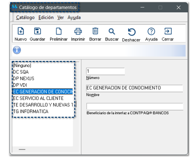 Para confirmar que el proceso se haya creado de manera correcta, ingresa a los catálogos creados y visualizarás los registros creados con base a la información obtenida de los CFDI de nómina.