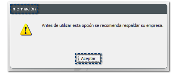 Para ejecutar esta utilería, te recomendamos realizar un respaldo de tu empresa.