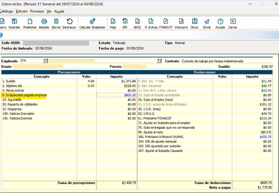 A partir de esta versión, se realizará el timbrado de sobre-recibos de nóminas que incluyan conceptos de incapacidad.