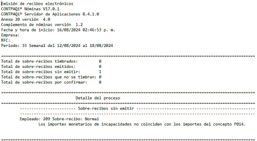 Anteriormente, al realizar el timbrado de sobre-recibos con incapacidades, se mostraba el siguiente error: