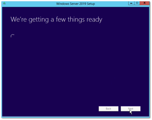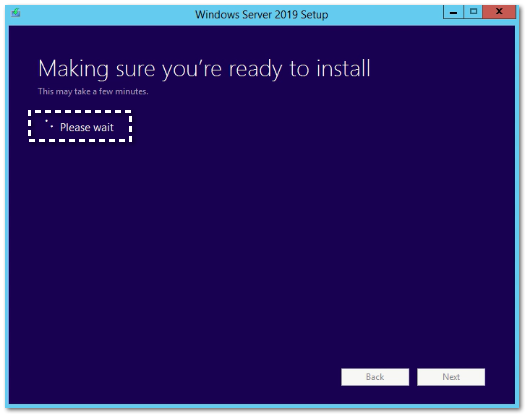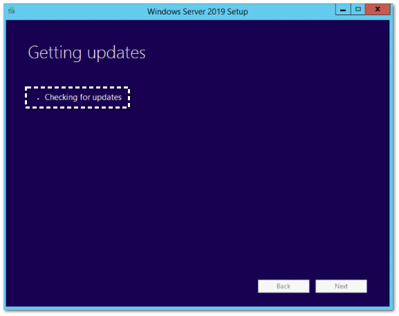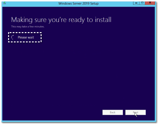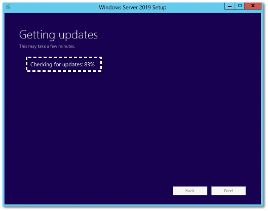 En caso de que se muestre este aviso, deberás cerrar la ventana para interrumpir el proceso de actualización de Windows Server 2019, posteriormente desinstala y/o deshabilita la aplicación que se haya indicado, y después volver a ejecutar el proceso de actualización desde el paso 2.