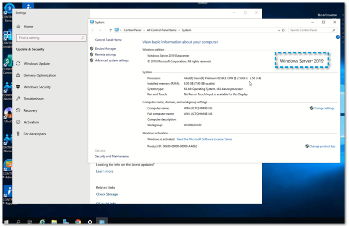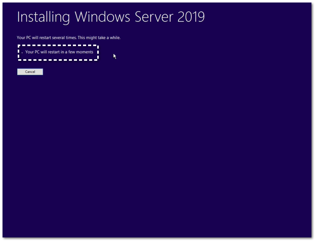 El servidor se reiniciará de forma automática y podrás validar que ya cuenta con Windows Server 2019.