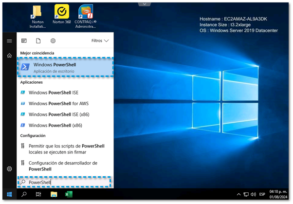 Ve al menú Inicio y en la barra de búsqueda escribe Powershell y haz clic sobre la opción.