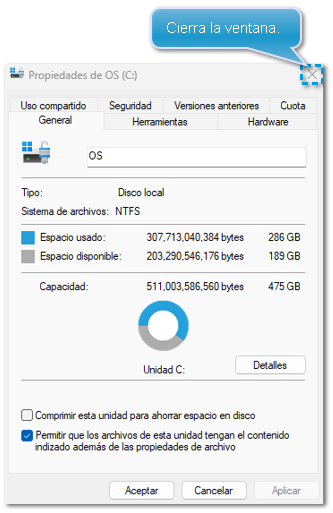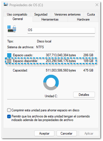 Se mostrará la ventana donde podrás validar el espacio disponible que tiene el escritorio virtual.