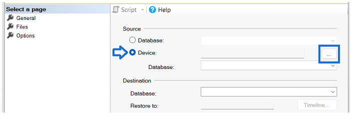 3. Marcar la opción de Dispositivo (Device) y dar clic en los 3 puntos del campo.