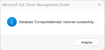 6. Validar la información del respaldo y presionar Aceptar (OK).