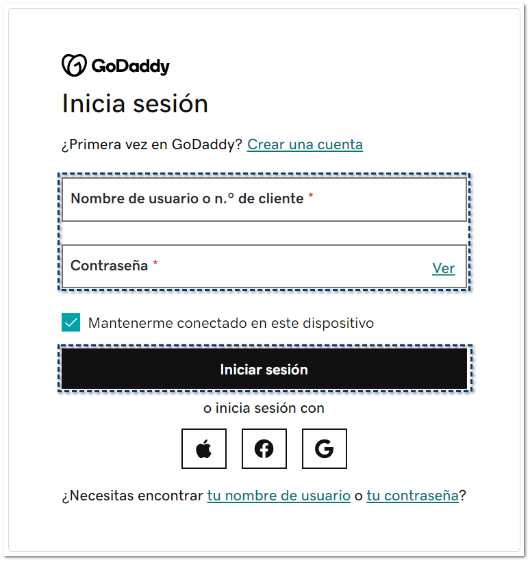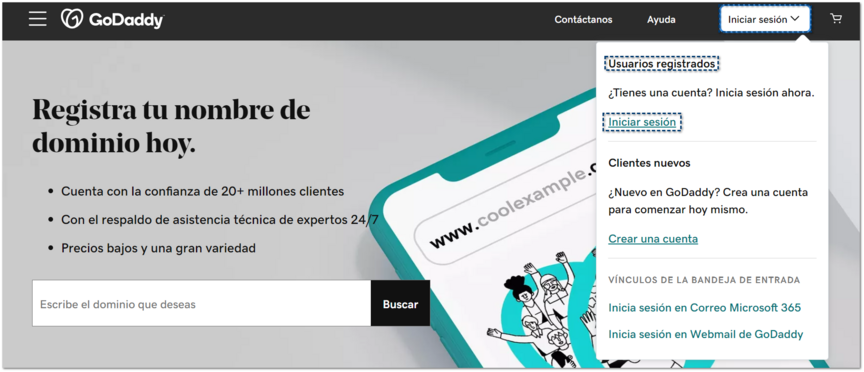 También podrás ingresar directamente desde la siguiente liga para iniciar sesión: Iniciar sesión en GoDaddy