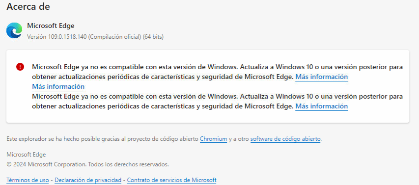 En el caso de terminales que manejen Windows 8.1 o anteriores, ya no se van a actualizar los navegadores EDGE y Google Chrome.