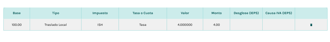 A partir de la versión 4.0.0 liberada el 21 de Noviembre de 2024, ahora la tasa en impuestos locales (retenido y trasladado) se calcula en porcentaje, es decir, el campo toma el valor ingresado como porcentaje.