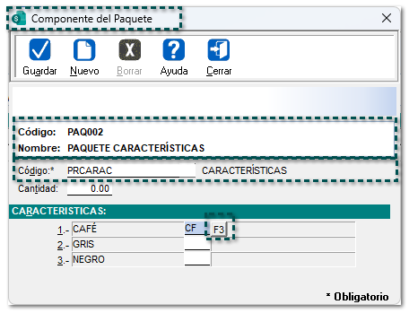 A partir de esta versión, se podrá seleccionar correctamente las "características" para un componente de un Paquete a través del botón <F3>.