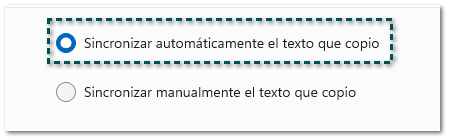 En esa misma sección selecciona la opción "Sincronizar automáticamente el texto que copió".