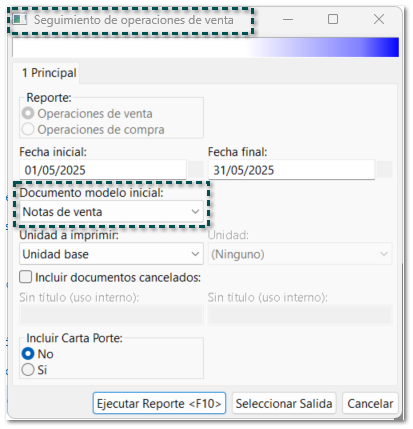 Se añade en el filtro "Documento modelo inicial" la opción Notas de venta: