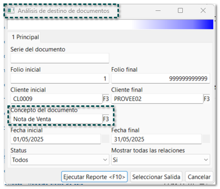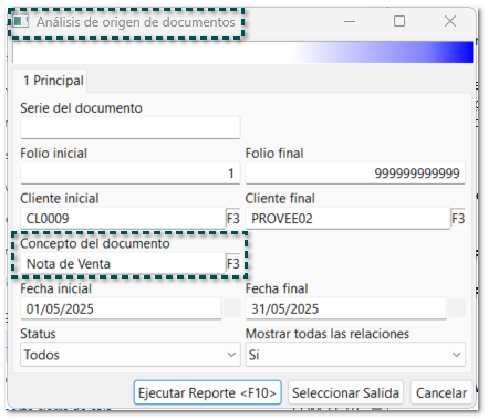 Se incluye en el filtro "Concepto del documento" los conceptos del documento para la Captura de Notas de venta (Nota de Venta y Devolución sobre Notas de venta).