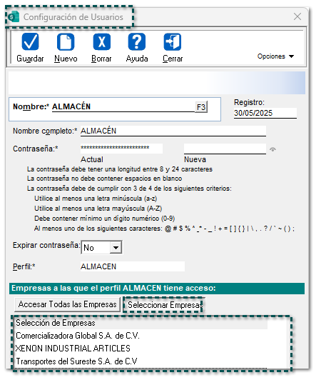 A partir de ahora, se permitirá agregar más de 50 empresas en la ventana de Configuración de Usuarios a un perfil distinto al de SUPERVISOR.