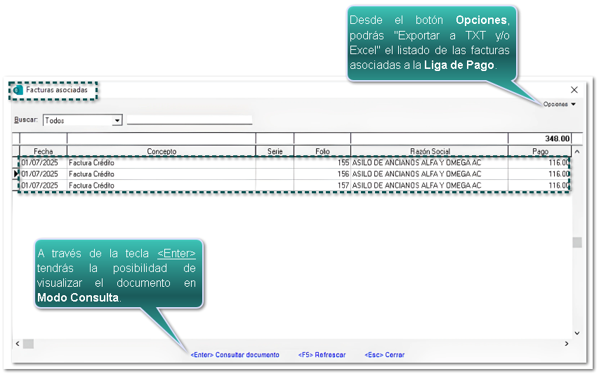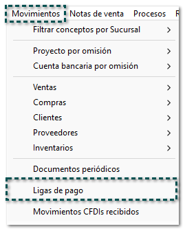 Nueva opción "Ligas de pago" desde el menú Movimientos