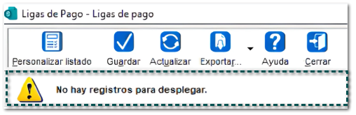 En esta ventana, podrás crear una nueva liga de pago, modificar las ligas ya generadas o consultar las existentes.
