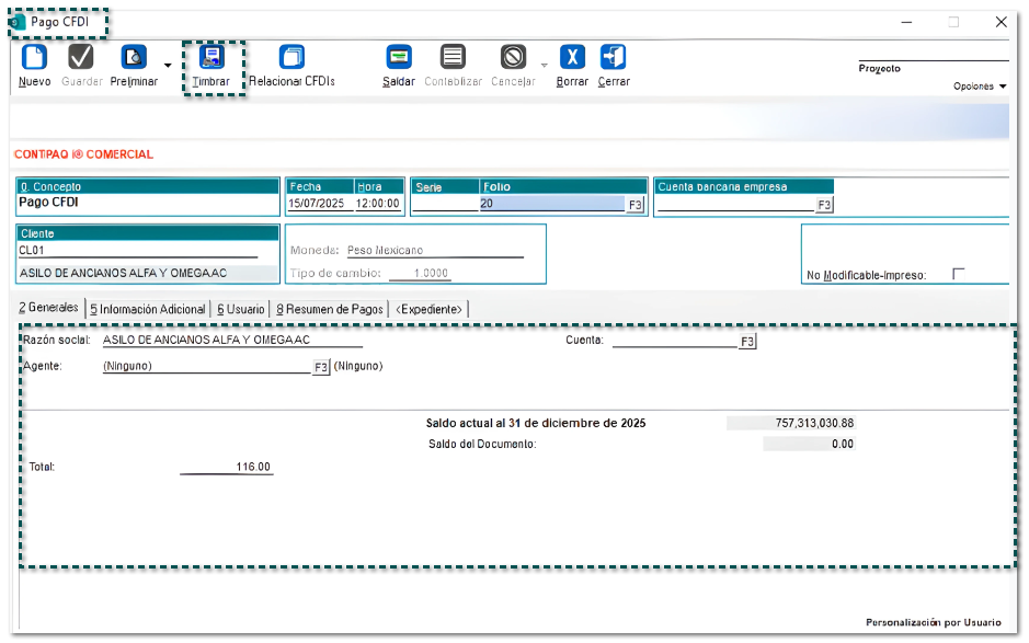 Por ejemplo; Sí el 5 de mayo del 2025 se habilitó la opción de Vigencia (días), y está configurada que sólo tenga 10 días de vigencia, entonces, del 5 de mayo del 2025 se le sumarán los 10 días y se asignará y mostrará la nueva fecha de vigencia (15 de mayo del 2025).