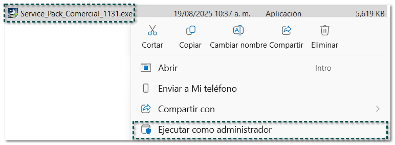 Sobre el archivo .exe, haz clic derecho y selecciona Ejecutar como Administrador.