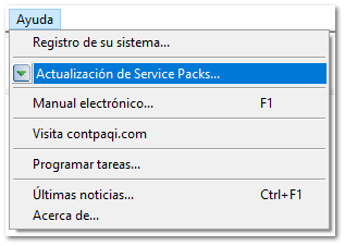 Puedes instalarlo abriendo el sistema, sin necesidad de ingresar a la empresa; ve al menú Ayuda, Actualización de Service Packs.