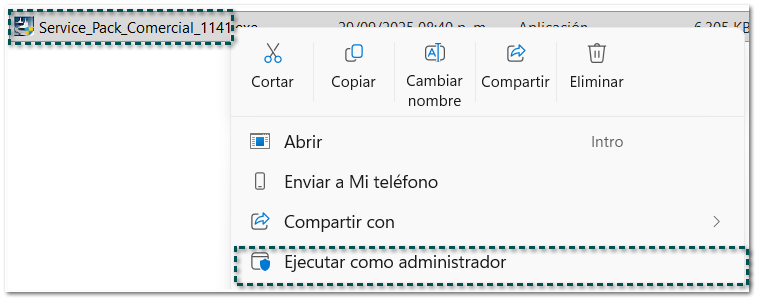 Sobre el archivo .exe, haz clic derecho y selecciona Ejecutar como Administrador.