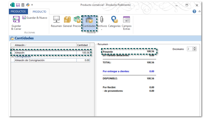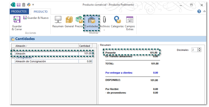 En esta versión, se mostrará de forma correcta la existencia los productos que con Pedimentos al consultar las Cantidades dentro del catálogo de Productos.