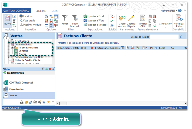 El grupo Ventas tiene deshabilitada la opción: Acceso del grupo XXXXX a la empresa, y posterior a eso el usuario Admin creo nuevas consultas en concepto de Facturas Cliente.