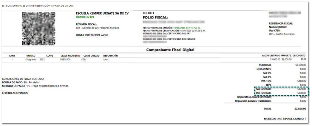 Anteriormente, al visualizar la Representación Gráfica de los documentos XML, los importes de IVA e ISR Retenidos se mostraban en cero, aun cuando si estaban incluidos en el documento