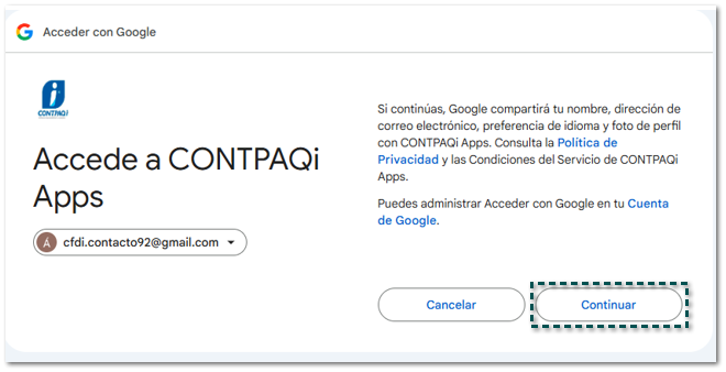 El proceso de autenticación solo se realizará la primera vez que configures tu cuenta dentro del sistema; y debes realizarlo por cada empresa en la que desees configurar la cuenta de correo.