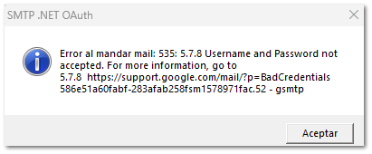 A partir del 30 de septiembre de 2024 Google dejó de dar soporte al método de autenticación de envío de correo vía SMTP utilizando usuario y contraseña, y solo será posible realizar la configuración mediante OAuth 2.0.