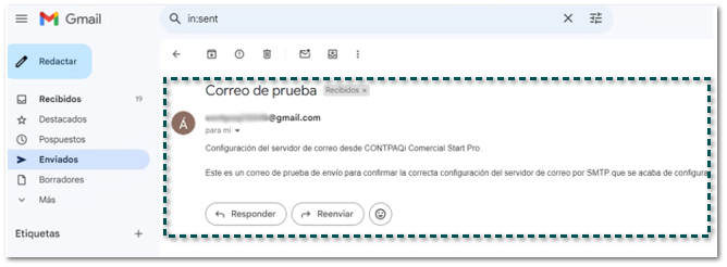 ¡Listo!, La configuración fue realizada, puedes validar el correo de prueba que llegó a tu cuenta, lo que indica que ya puedes realizar el envío de tus documentos por correo.