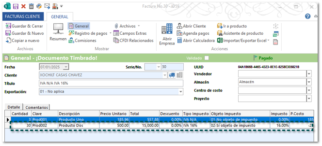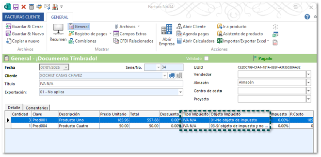 Cuando el documento tiene varios movimientos y todos tiene la mismo Objeto impuesto.