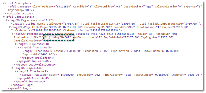 Dentro del XML en el atributo ObjetoImpDR se asumirá el valor: 02 (Si objeto de impuesto).