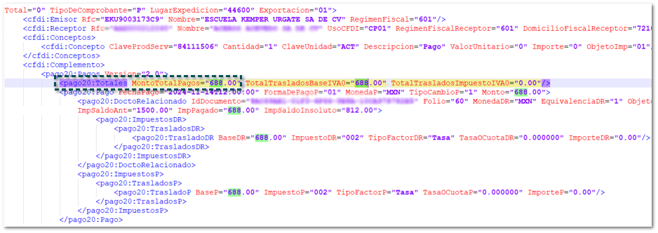 Anteriormente, al timbrar un Cobro cliente con manejo de factoraje financiero en el nodo MontoTotalPagos del XML se colocaba el importe de $700, aun cuando debía ser de 688, que es lo que le faltaba a la factura para restar el saldo.