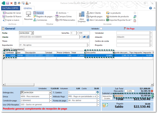 A partir de esta versión, se calcularán de forma correcta los impuestos, cuando el movimiento de la partida contenga descuentos con decimales y la cantidad del producto sea elevada.