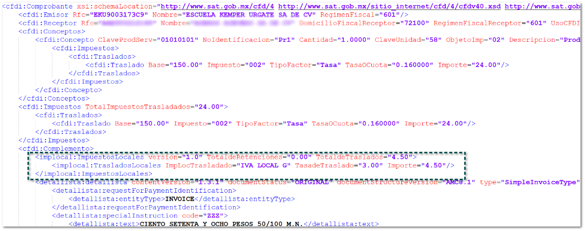 A partir de esta versión, se mostrarán los nodos de los "Impuestos Locales" de cualquier complemento dentro del XML al timbrar el documento de Factura Cliente.