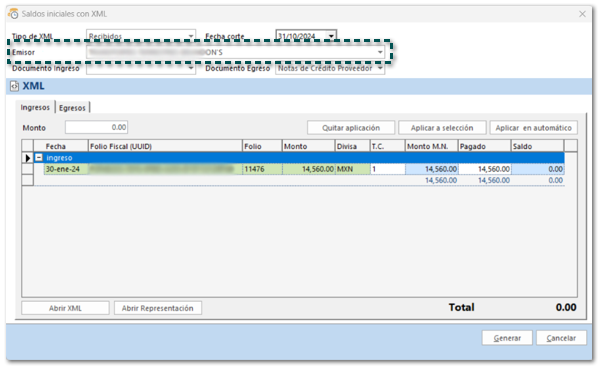 A partir de esta versión, no se mostrará el mensaje: Run-time error 3704: La operación no está permitida si el objeto está cerrado, al seleccionar al emisor en el proceso de generación de saldos iniciales cuando se utilizan los XML recibidos; permitiendo elegir cualquier emisor del listado.