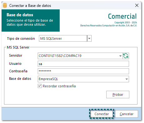 ¡Y listo!, se abrirá la empresa en SQL Server® para que puedas trabajar en ella.
