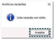 Una vez seleccionadas las BD que se permanecerán en el listado, haz clic en el botón Vaciar archivos recientes.