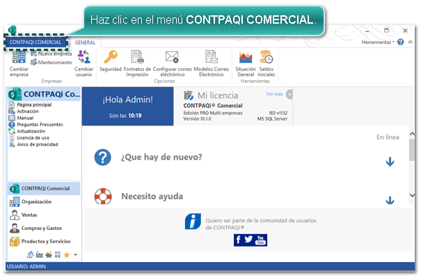 Dentro del sistema, haz clic en el menú CONTPAQI COMERCIAL.