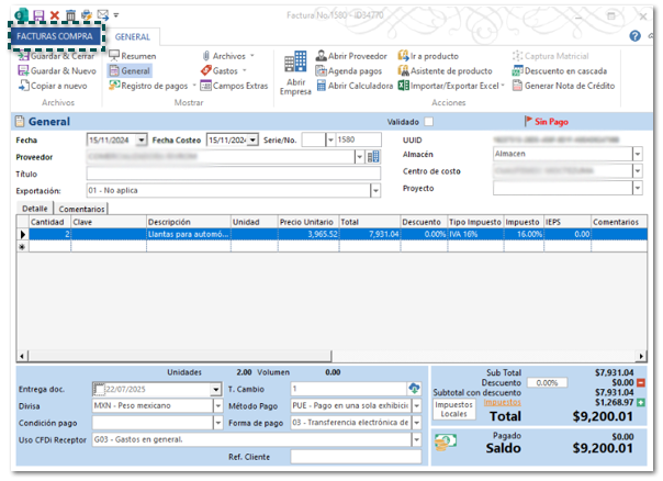 A partir de este Service Pack, el sistema procesara y creara de forma correcta los documentos de Facturas Compra, cuando estos se generen a partir de los XML Recibidos.