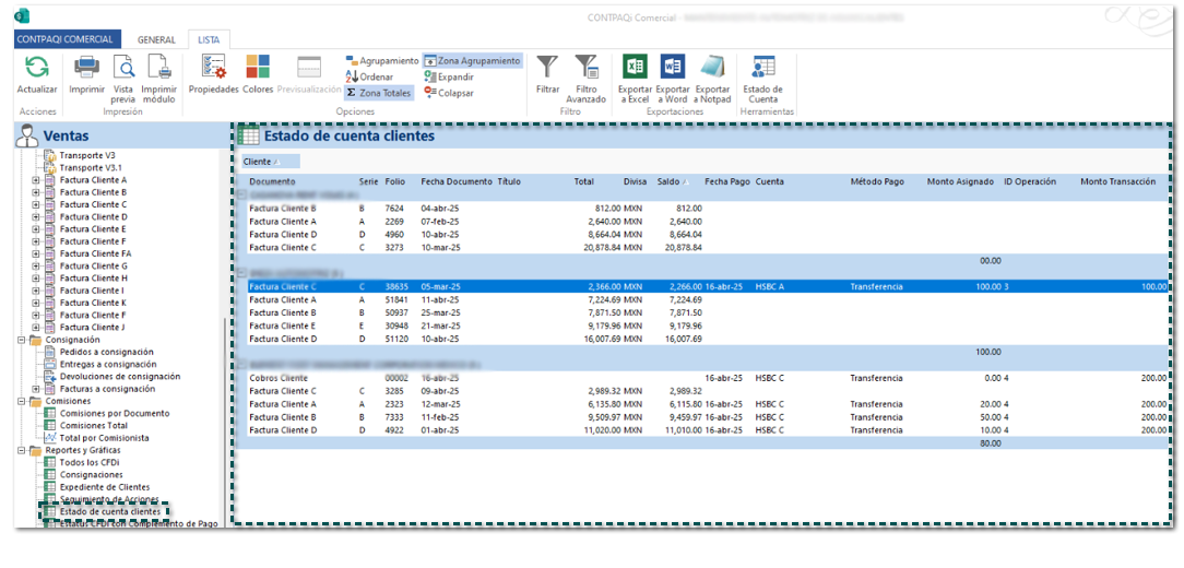 En este Service Pack, al consultar el reporte Estado de cuenta de clientes, se mostrará de forma correcta la información de cada documento.