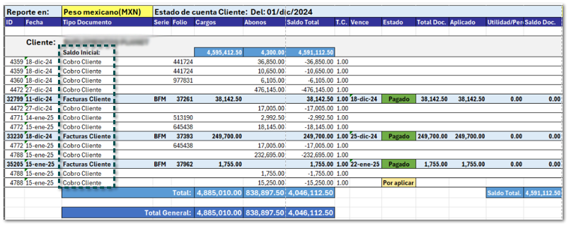 A partir de este Service Pack, se mostrarán los documentos de cobro cliente correspondientes, al generar el reporte Estado de Cuenta desde el catálogo de Clientes.