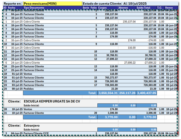 Anteriormente, al generar el reporte Estado de cuenta de clientes por medio del botón Estado de Cuenta, se sumaban los importes los documentos de clientes que comenzaban con el mismo nombre.