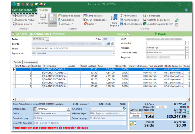 En este Service Pack, no se mostrará el mensaje: No se encontró el elemento en la colección que corresponde al nombre o el ordinal solicitado, al intentar abrir un documento de Facturas Cliente, permitiendo consultar el documento.
