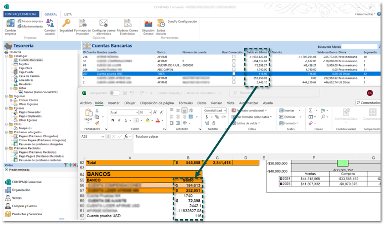 A partir de este Service Pack, el Saldo en libros del catálogo de Cuentas Bancarias coincidirá con el Saldo del reporte Situación General, para cada cuenta bancaria.