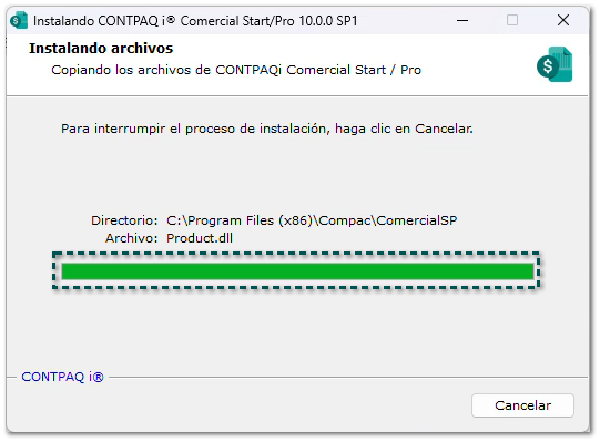 Se mostrará la barra con el avance de la instalación.