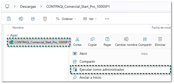 Sobre el archivo .exe, haz clic derecho y selecciona Ejecutar como Administrador.